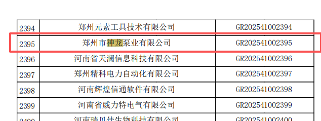 神龙泵业成为2025年第一批认定报备的高新技术企业